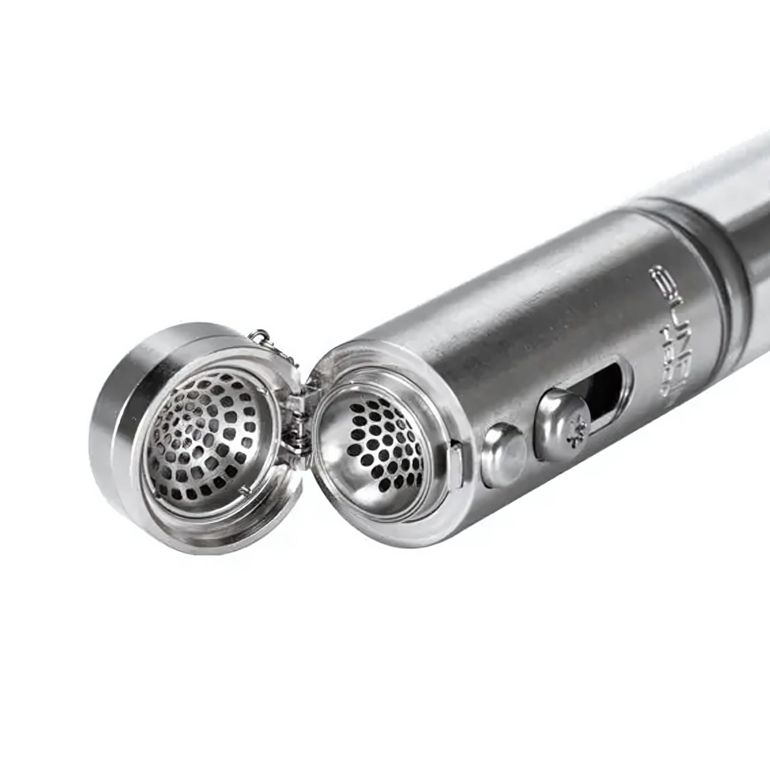 La base est composée d’acier inoxydable et abrite un bol ajustable sur ressort avec une capacité modulable de 0,5g à 1g. Ce bol est facile à manipuler et une fois remplit, il ne vous reste plus qu’à décapsuler le bouchon aimanté et à vous équiper d’un briquet pour embraser votre chanvre et commencer la dégustation !