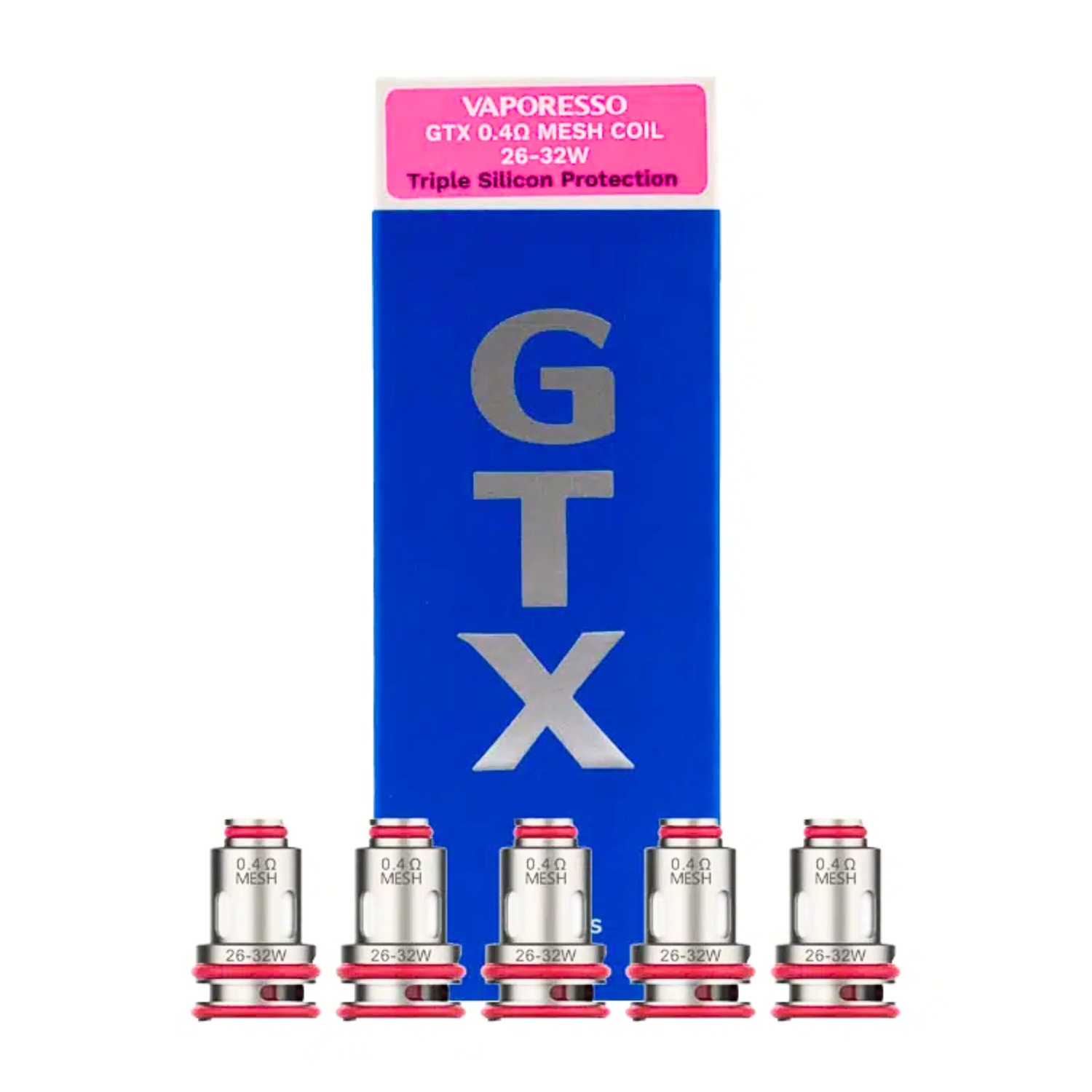 - GTX 0.4Ω MESH COIL 26-32W (tirage optimal : 30W). Résistance indiquée pour une vape en inhalation directe restrictive et une consommation moyenne à élevée.